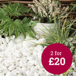 White Pebbles are a pure white, naturally reflective, white pebble. This attractive product can be used to create a contrast against darker materials or build up to a feature in the garden. It's also small enough to be used as a top dressing for pots and planters but is available in a larger Cobble and Boulder size.