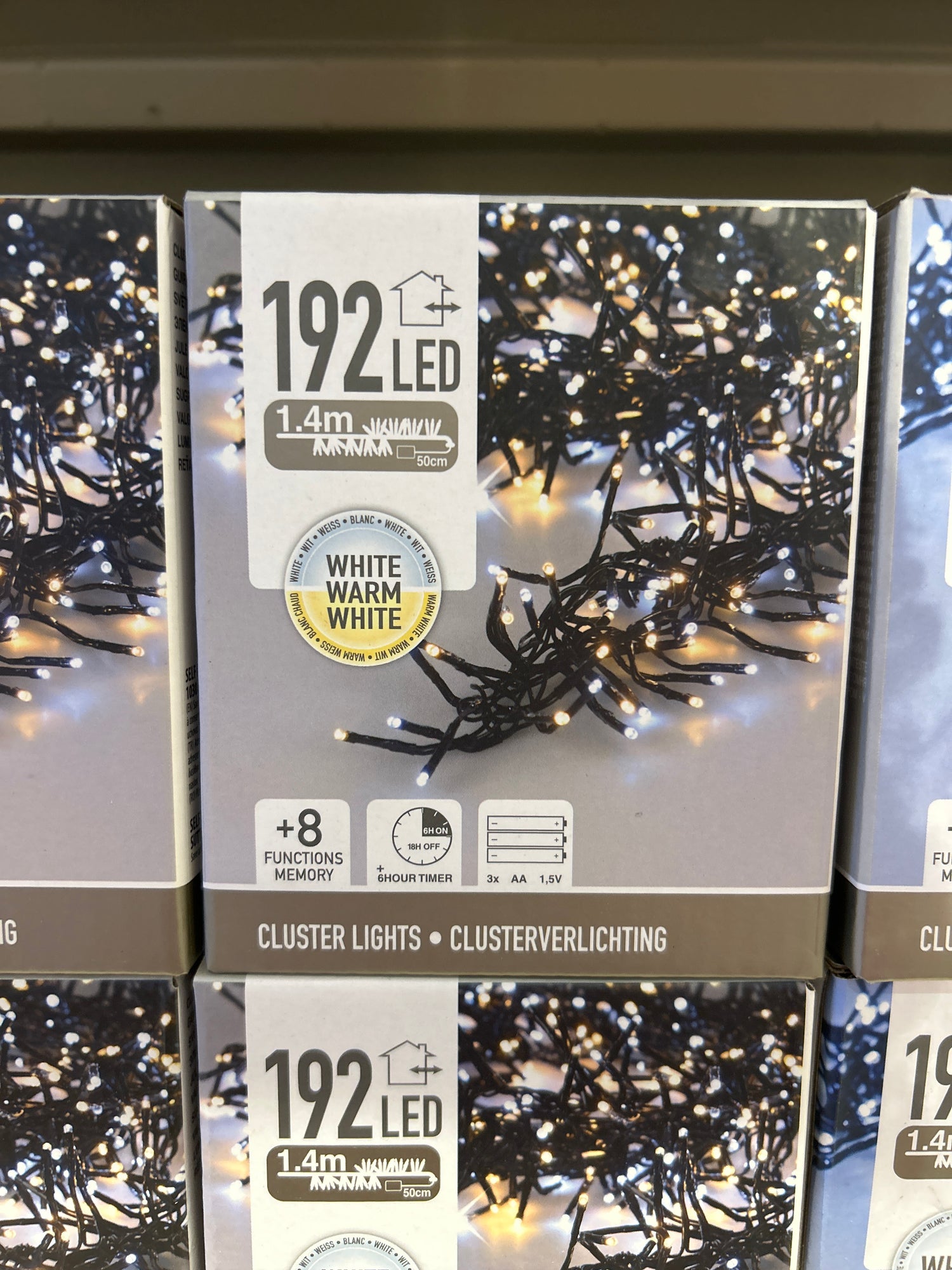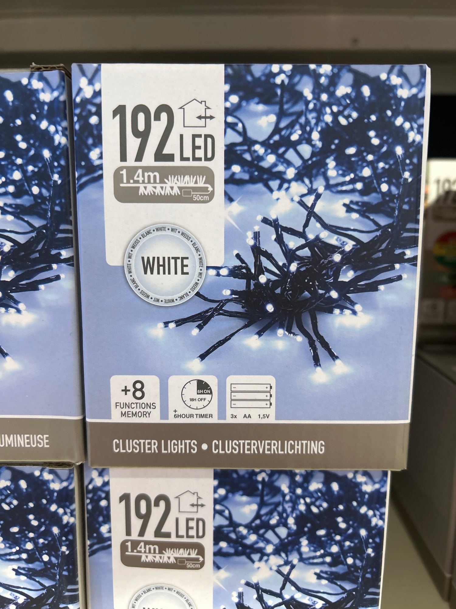 These 192 white LED cluster lights create a dazzling, pure white glow, perfect for winter-themed decor. They offer a high-density, elegant lighting effect for both indoor and outdoor displays.