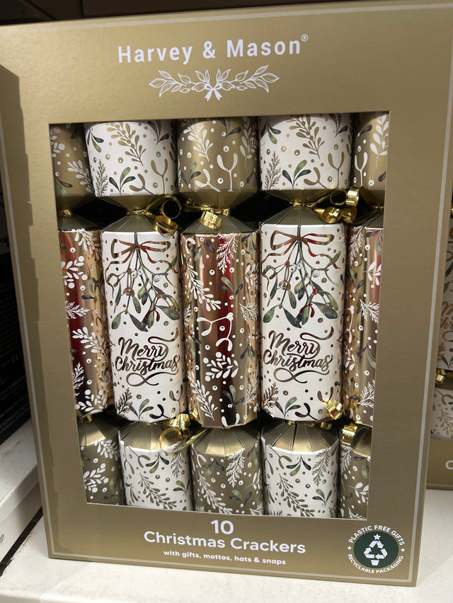 10 Gold Mistletoe 14" Crackers is backordered and will ship as soon as it is back in stock.