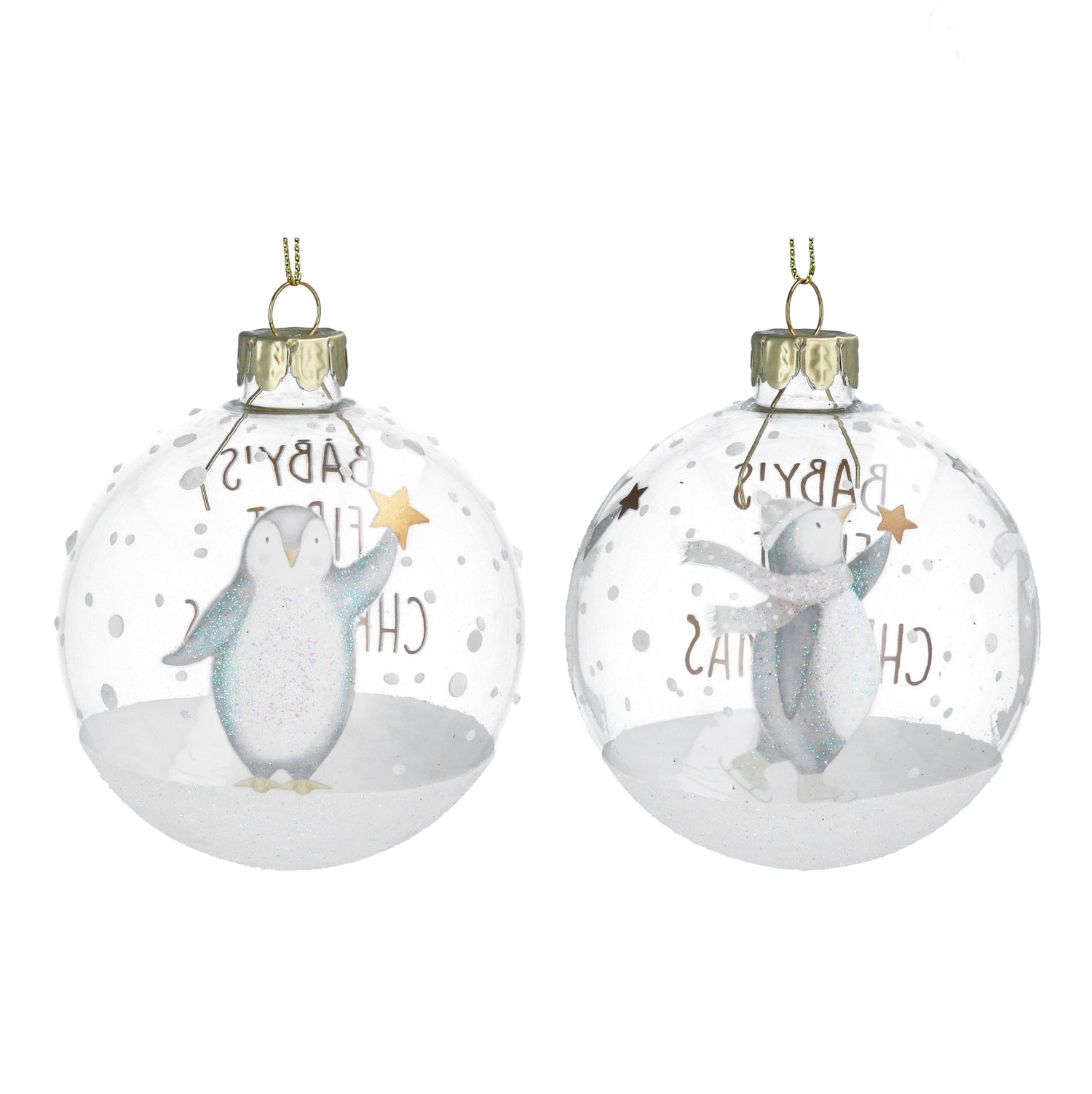 Clear Baby's 1st Christmas w Penguin Glass Ball