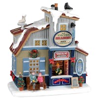 Description: Skating is one of the most popular winter pastimes in Caddington Village, and ’Tis The Season Skate Rentals is here for all of your specialist footwear needs! This charming building all decorated for the holidays features an open storefront with a well-wrapped-up employee, ready to serve everyone of any age who wants to come and enjoy some icy fun in the cold.