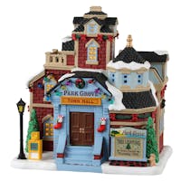 From the notice board out front, it is plain to see that the Park Grove Town Hall is the center for all things magical this holiday season. From the tree lighting ceremony to visits from Santa and the elves the town hall is a busy place. Gaily lit and decorated so it can be seen all around the square this charming red brick building is ready to host all the townspeople.