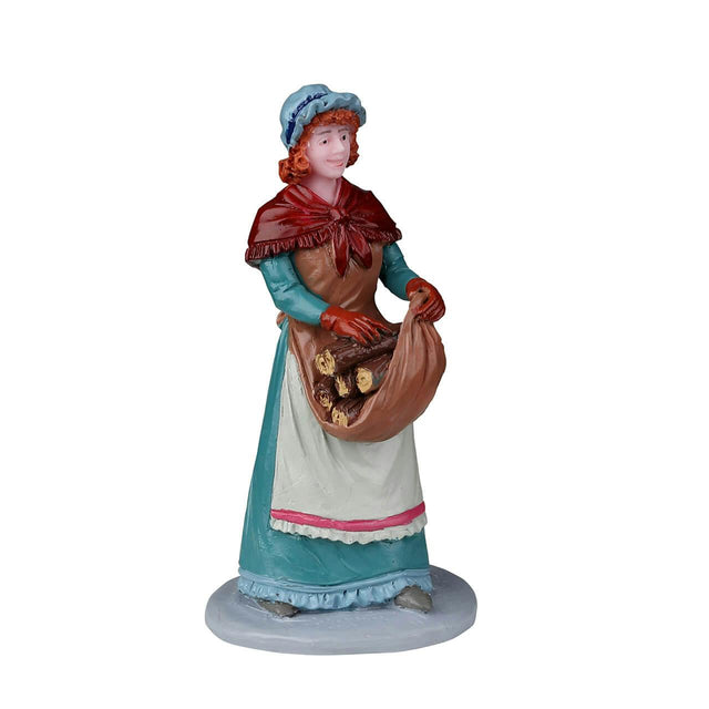Prepare for a cosy evening with Lemax Wood For The Fire. This figurine shows a villager carrying a bundle of firewood, ready to warm their home during the cold winter days. It's a simple yet essential scene that adds warmth and a homely feel to your village display.