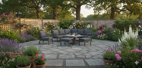 Tutbury - Fire Pit Table Corner Set Anthracite Grey - Grey Cushions