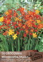 A vibrant mix of fiery orange, red, and yellow flowers on arching stems, attracting pollinators.