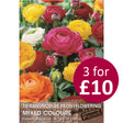 A stunning mix of Ranunculus varieties, producing lush, rose-like blooms in a vibrant range of colors. These long-lasting flowers are perfect for borders, containers, and cut flower arrangements. Thrives in well-drained soil with full sun to partial shade.
