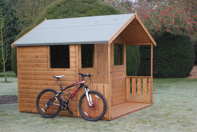The Hobby is our entry level summerhouse with a sturdy design that fits neatly into your garden. The perfect choice for a garden room or a storage facility. Quality features include a single ledged and braced door with zinc T-hinges, zinc ‘D’ handle and a lock and key. 2no front fixed windows and 2no fixed side windows are also included as standard. A 1ft roof overhang is included as standard with an option of a 2’-6” or 4’ veranda.