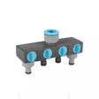 The Flopro Four Way Tap Connector, converts a single tap into four taps, each with its own flow control. Water flow is adjustable for each hose. The outer two male connectors can be removed to enable two timers. The connector securely attaches to the tap and like all Flopro watering products, will fit to all watering brands so will work with any watering you already have at home.