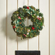Perfect Christmas wreath to welcome visitors to your door! Festive, rustic snowy effect decorative wreath with pine cones, red berries and decorative stars,